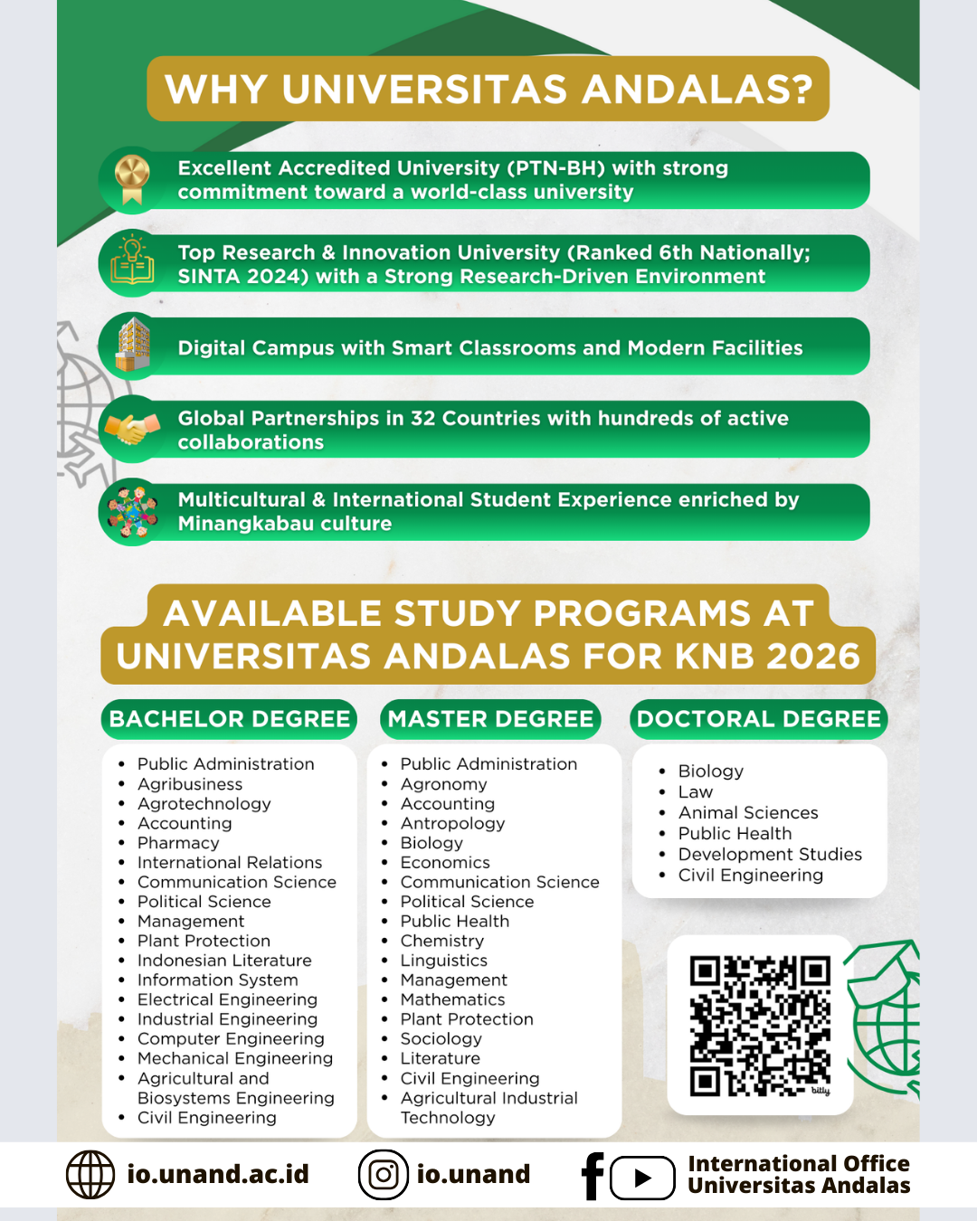 Looking for a globally recognized, research-driven university in Indonesia? Universitas Andalas (UNAND) is ready to welcome you through the KNB Scholarship 2026 program.